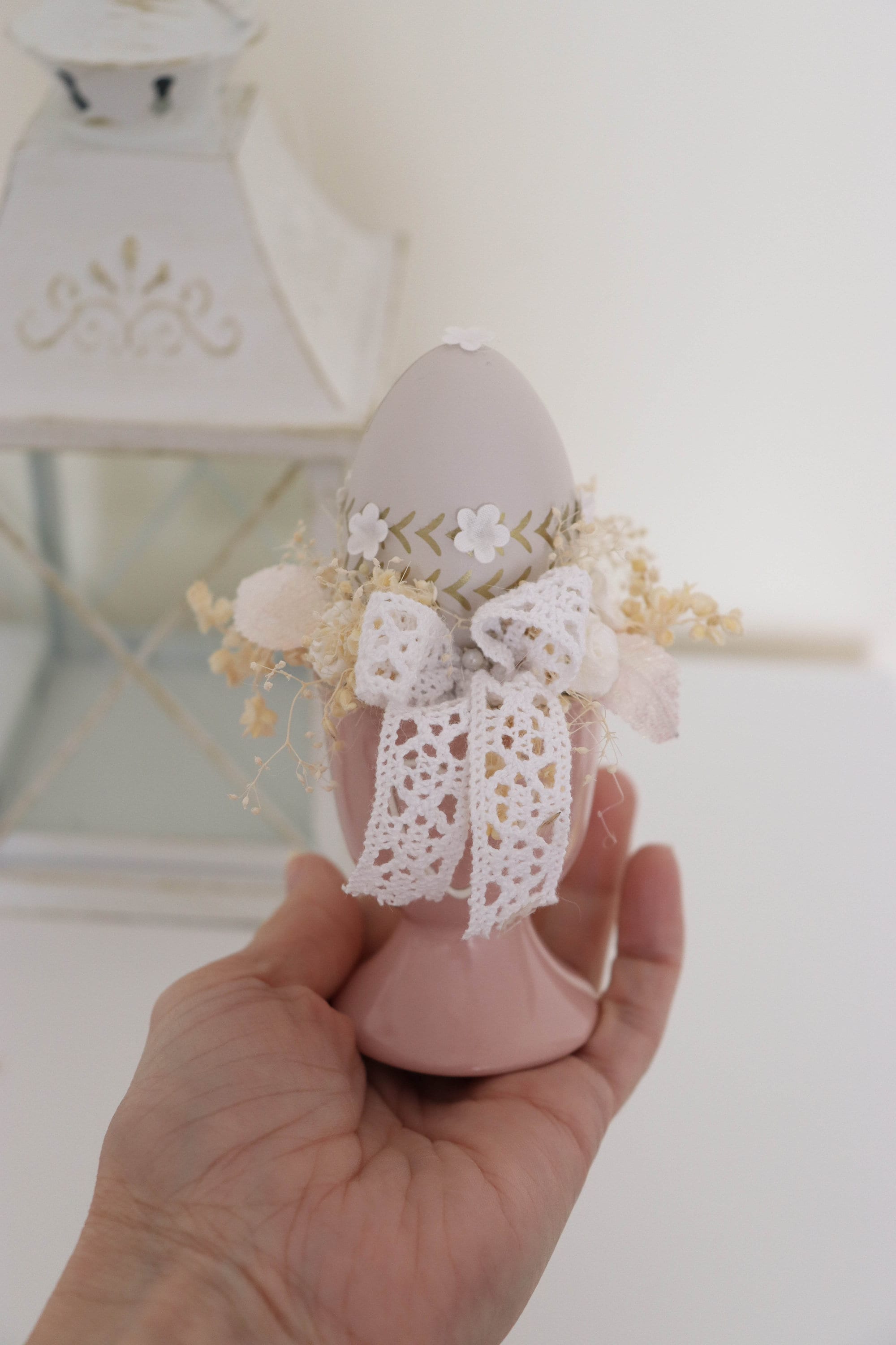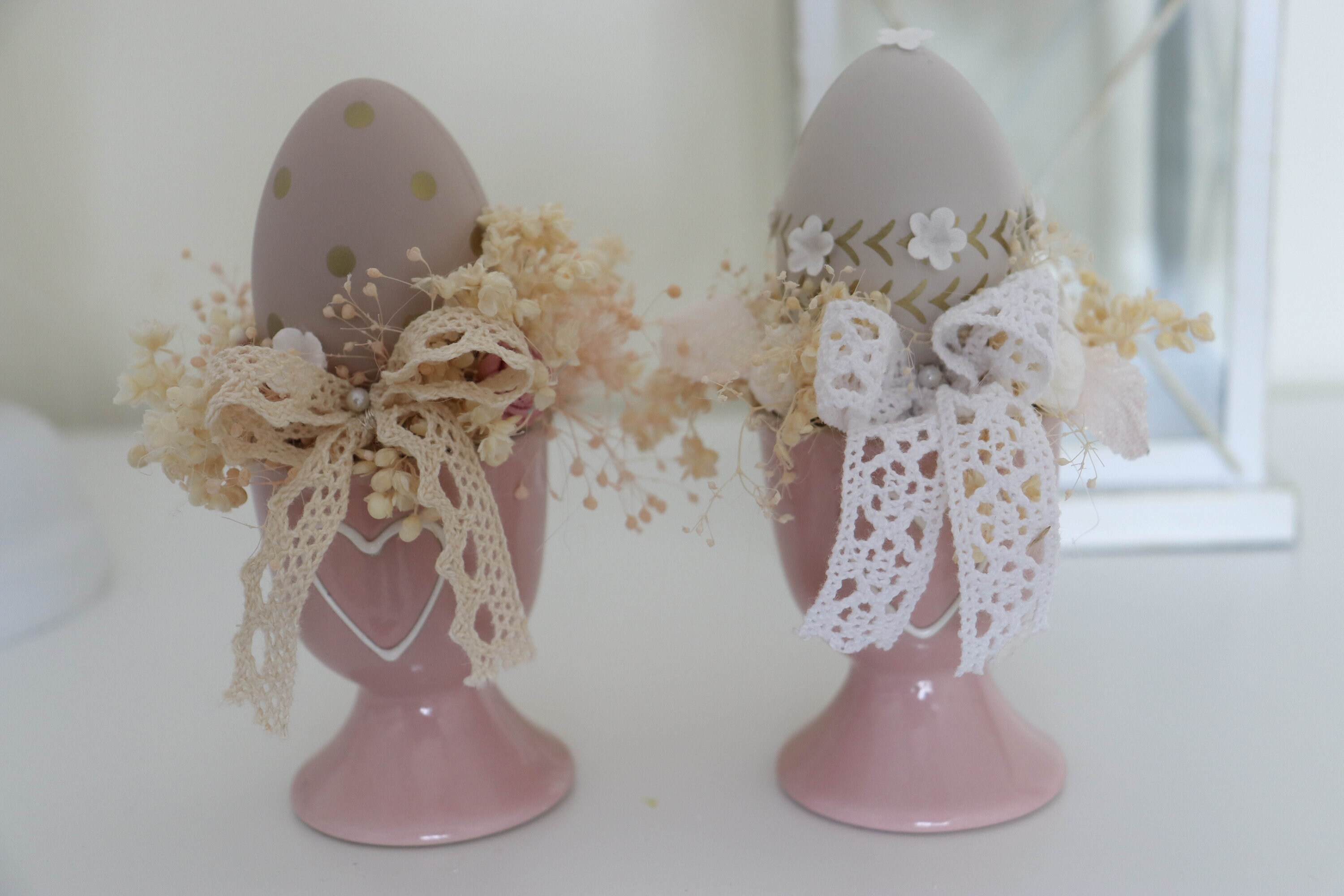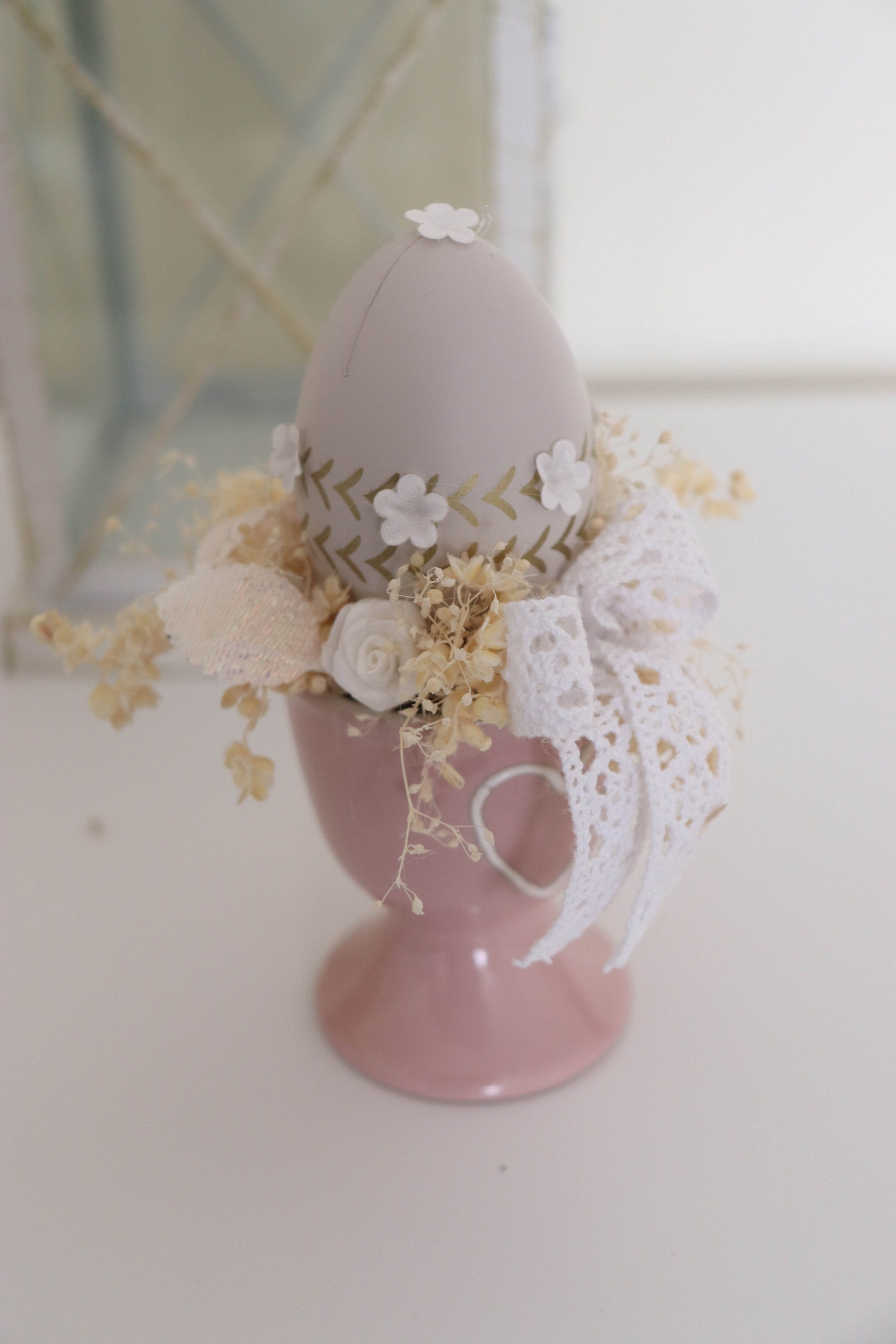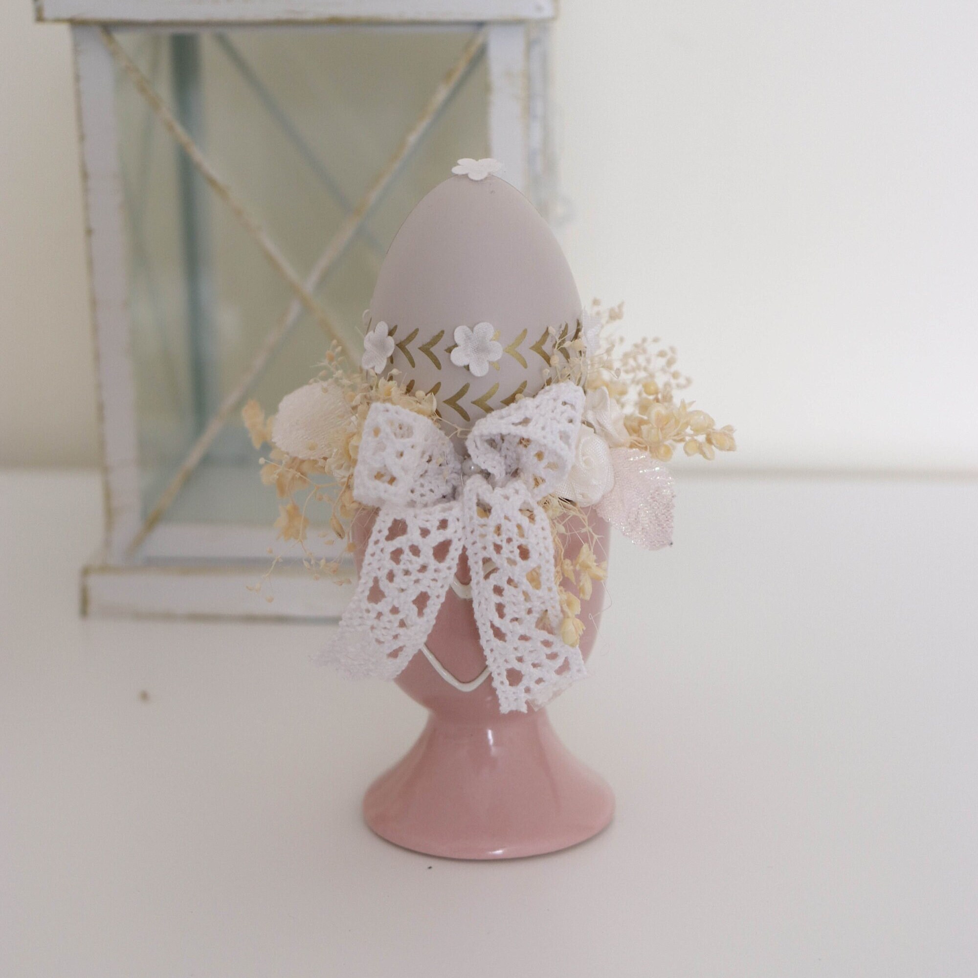 Beautiful Easter decoration. Decorate the easter table with something elegant and unique.Easter arrangements in a ceramic cupArtificial, dried flowers and eggs bring to the house beautiful atmosphere.Only 1 piece