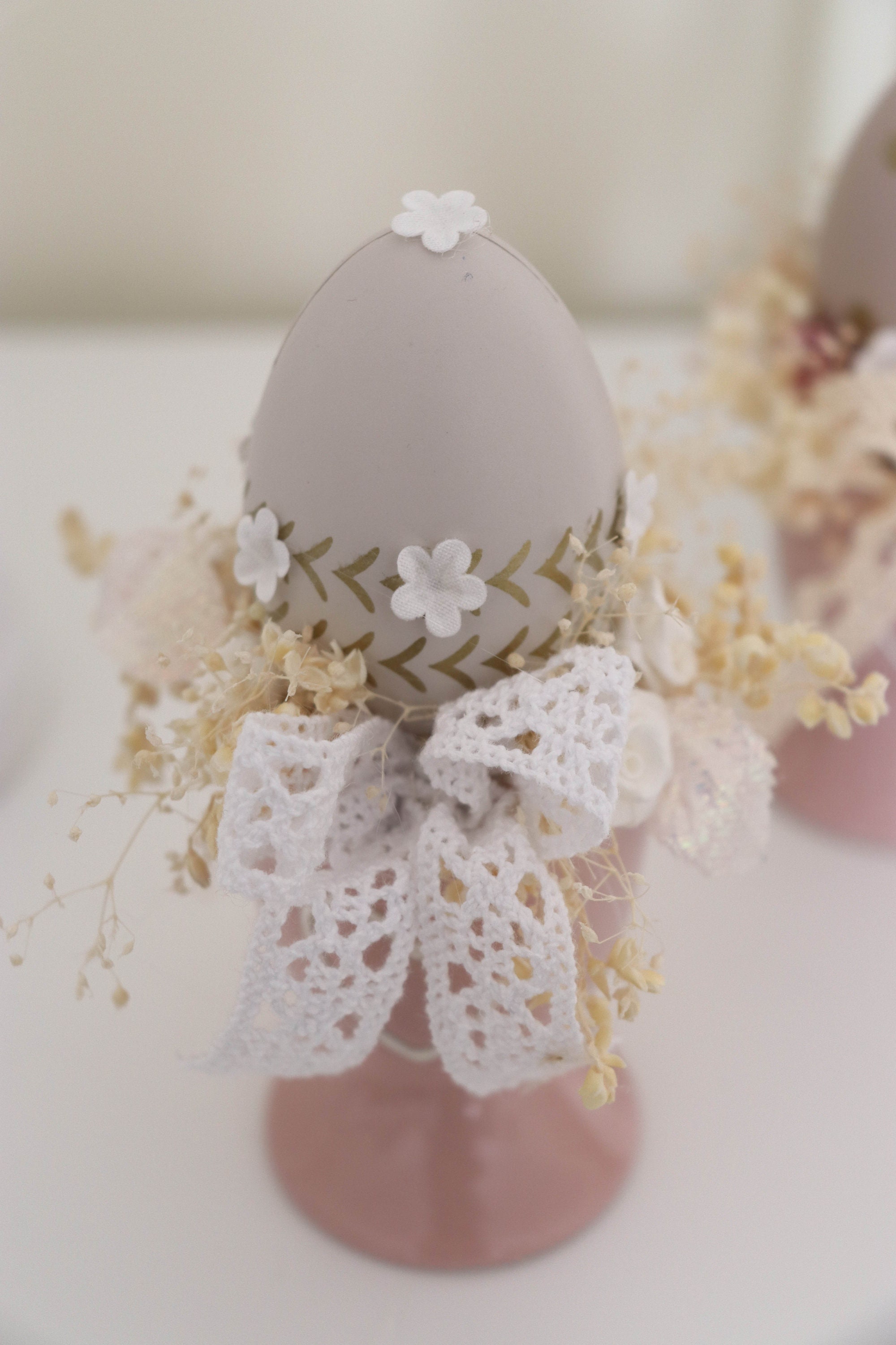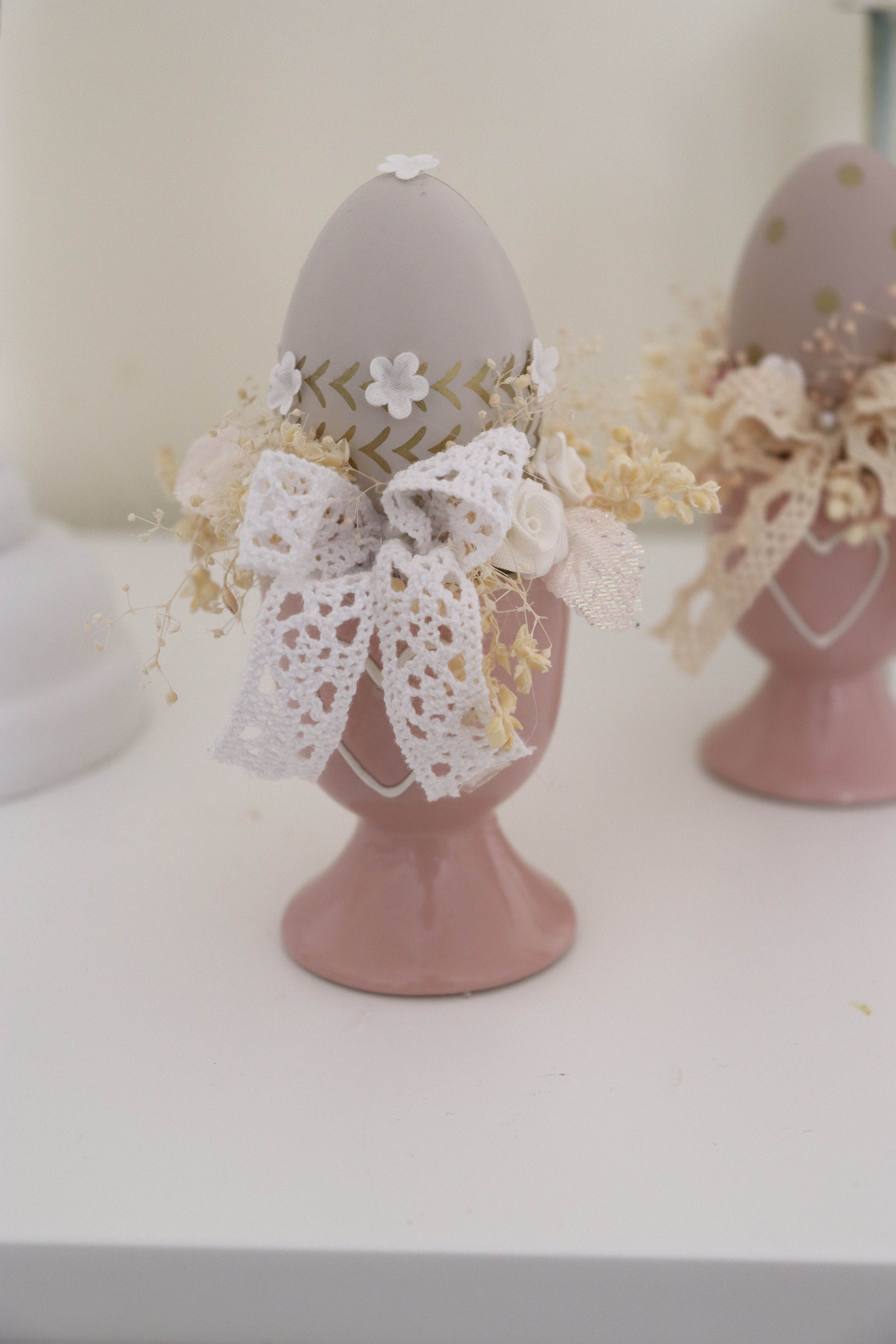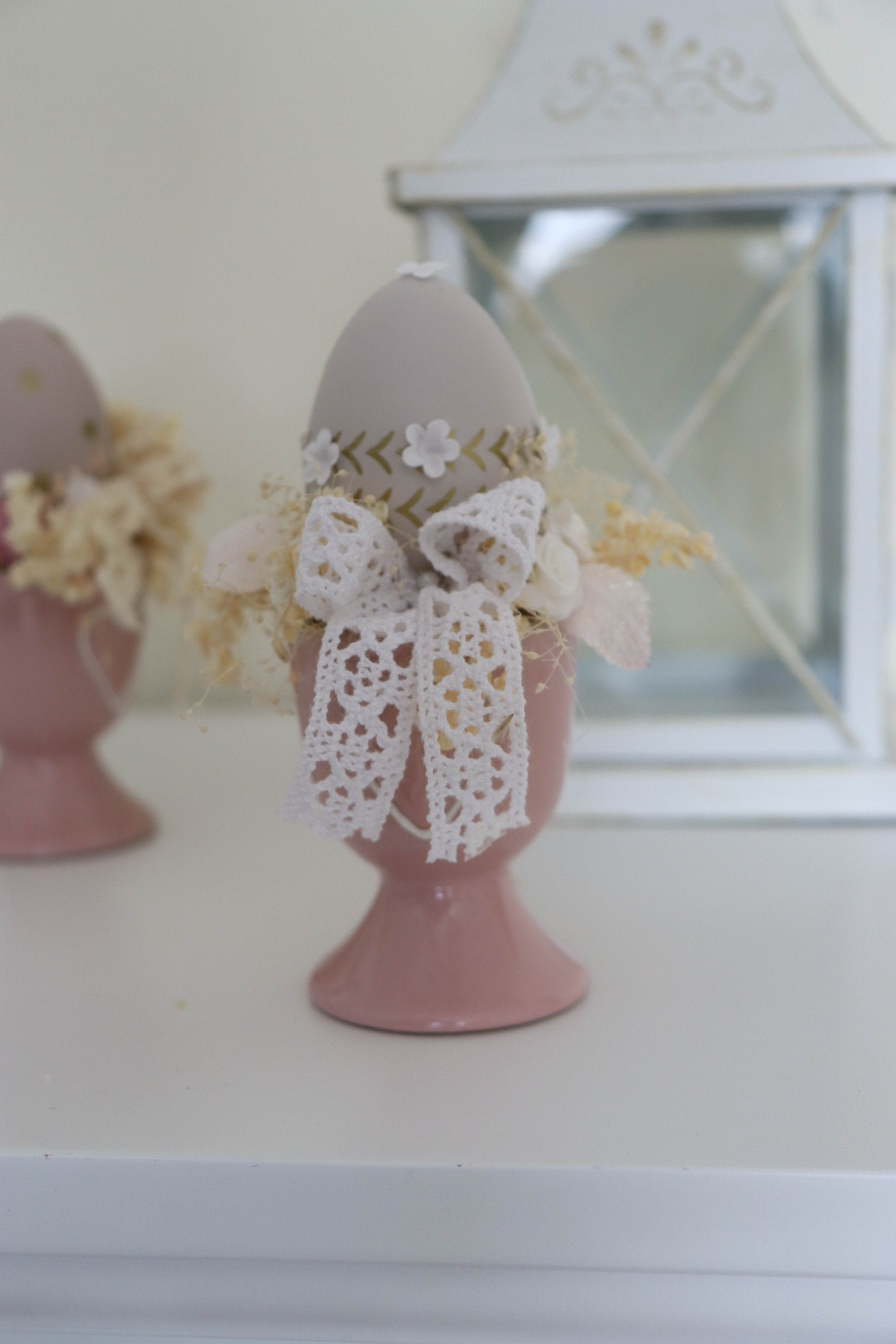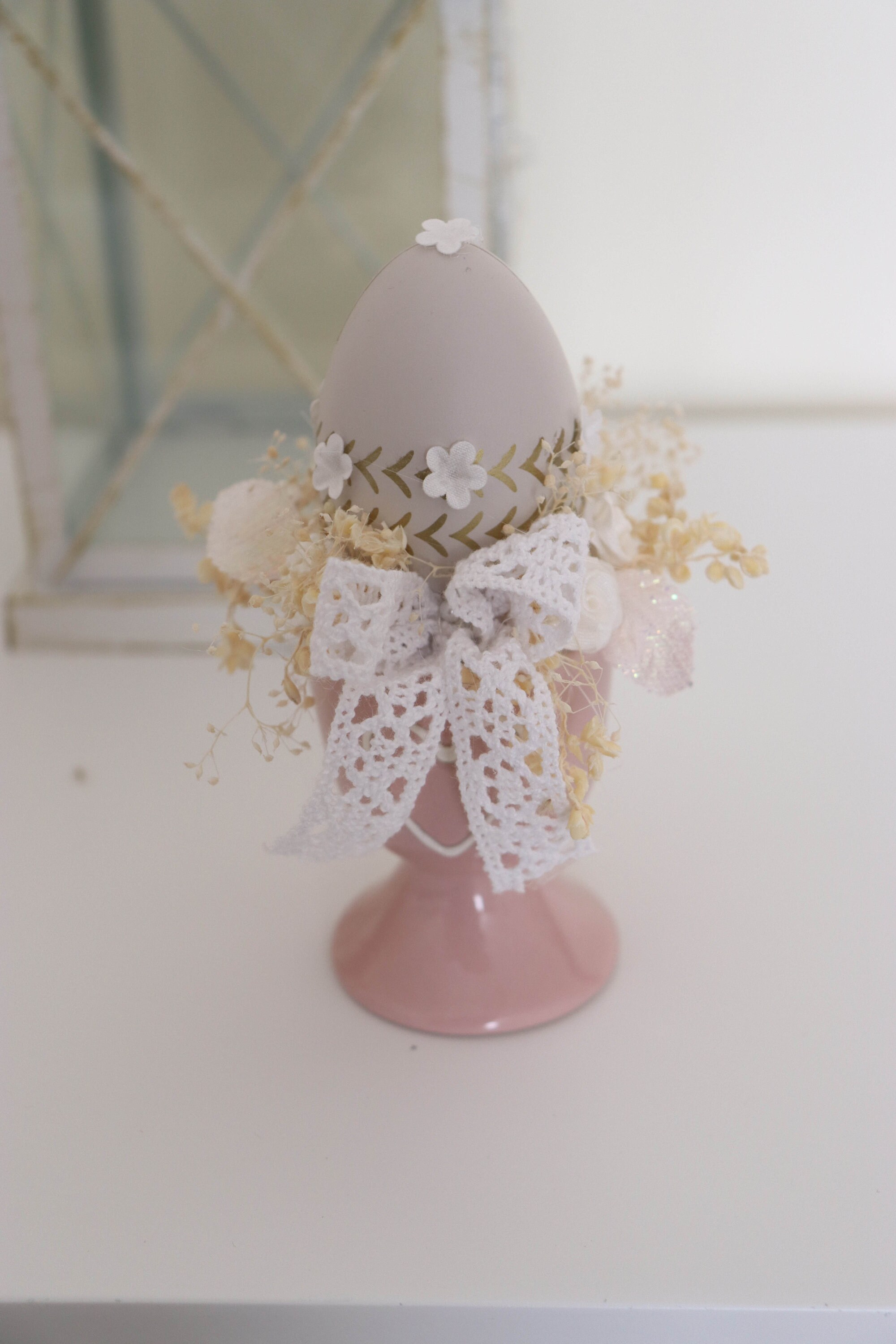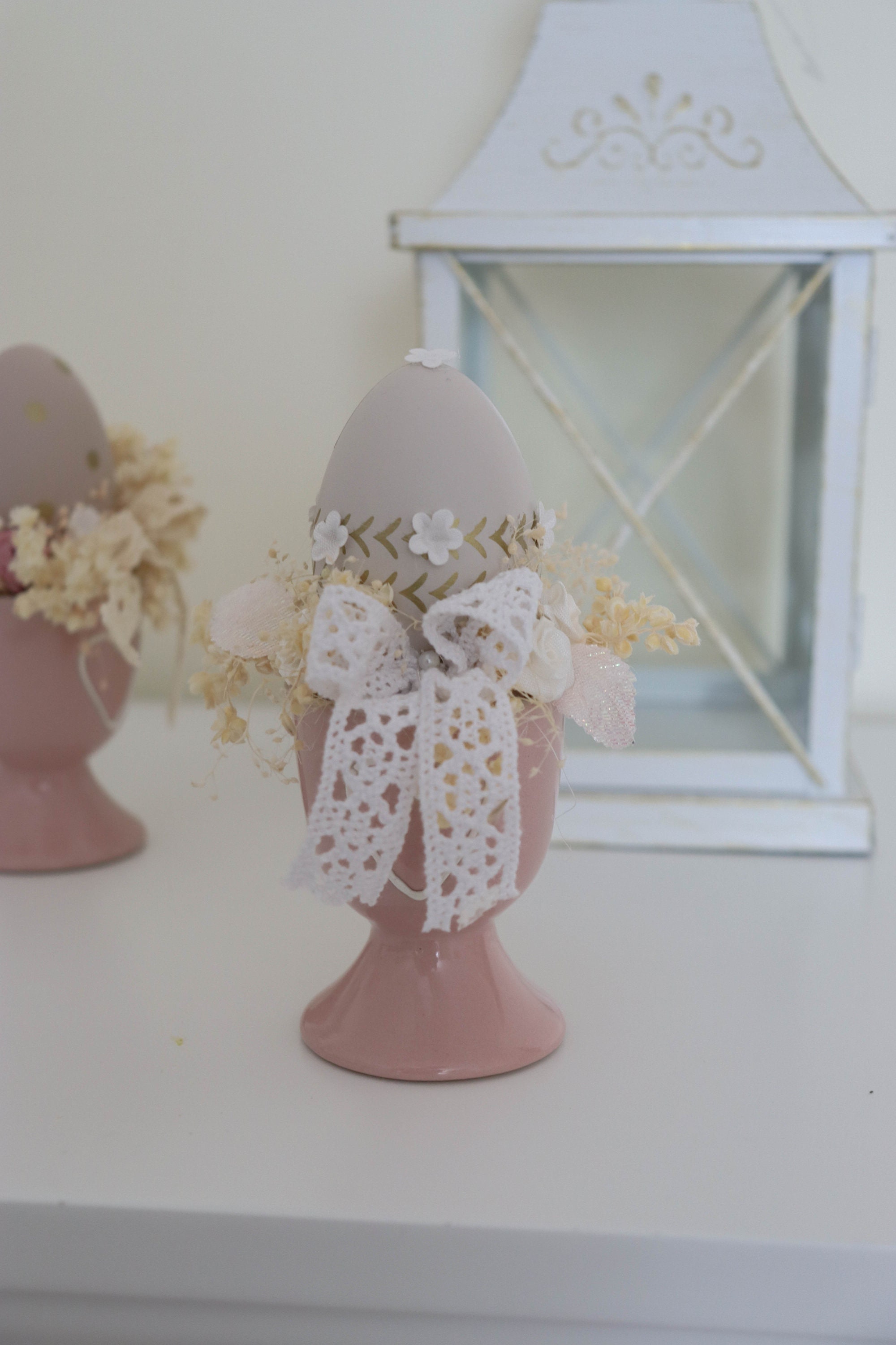 Beautiful Easter decoration. Decorate the easter table with something elegant and unique.Easter arrangements in a ceramic cupArtificial, dried flowers and eggs bring to the house beautiful atmosphere.Only 1 piece