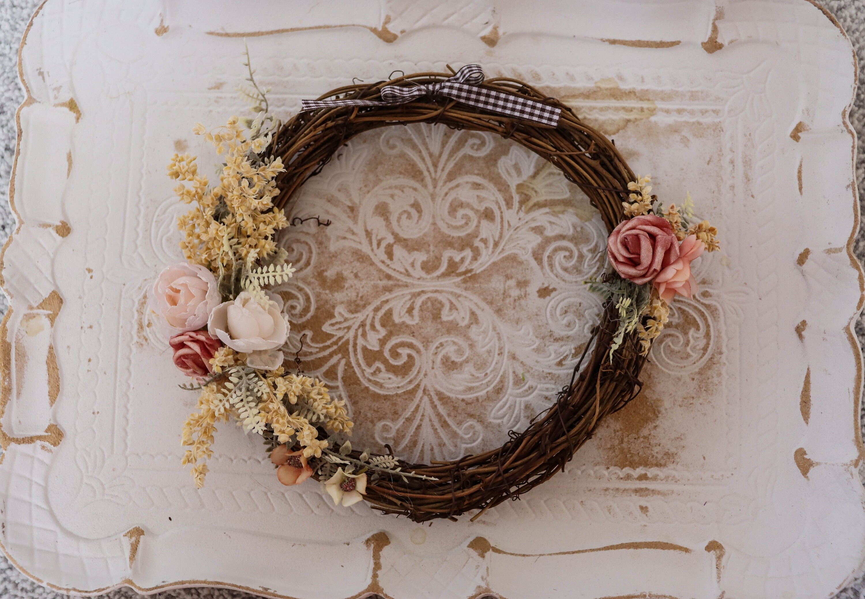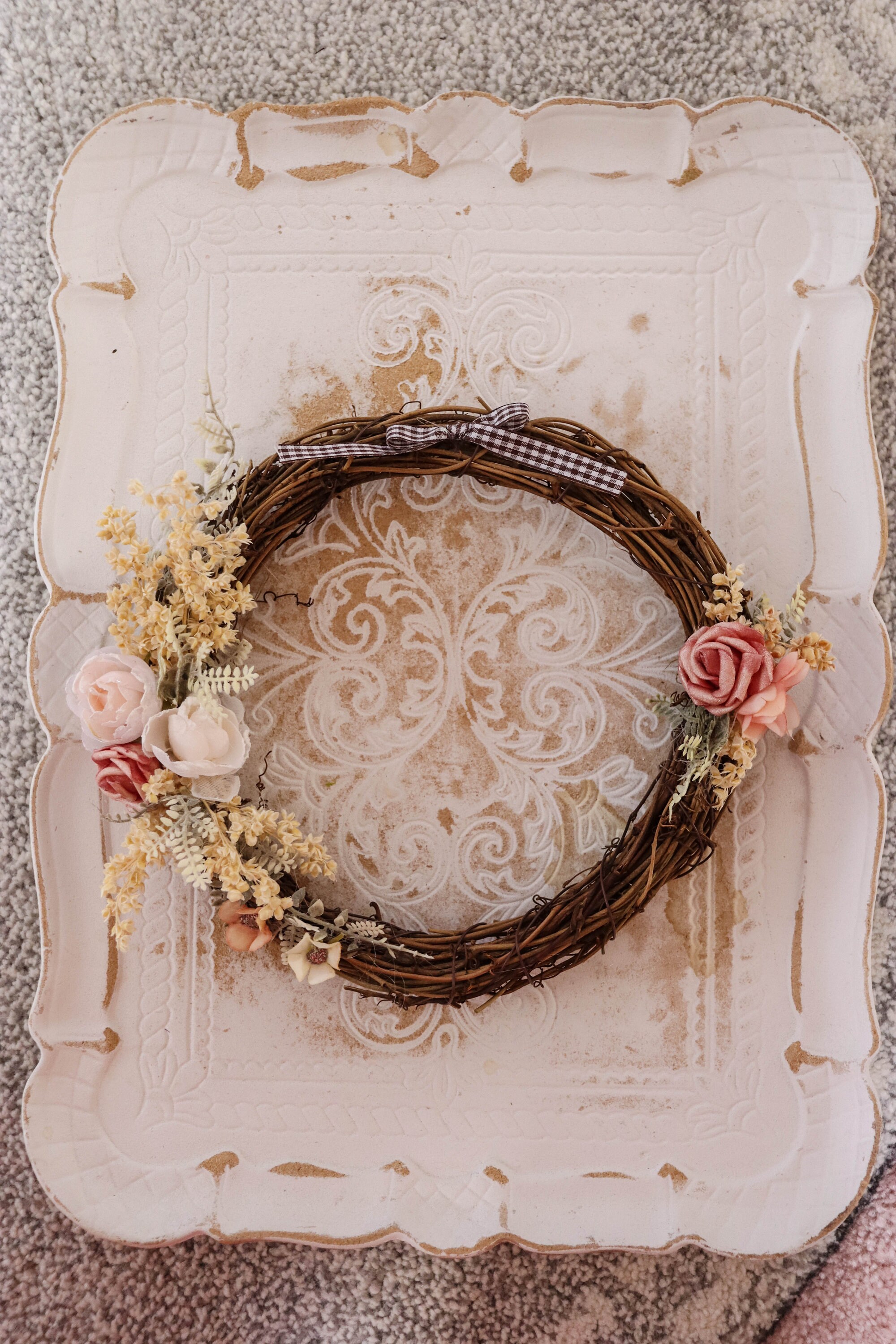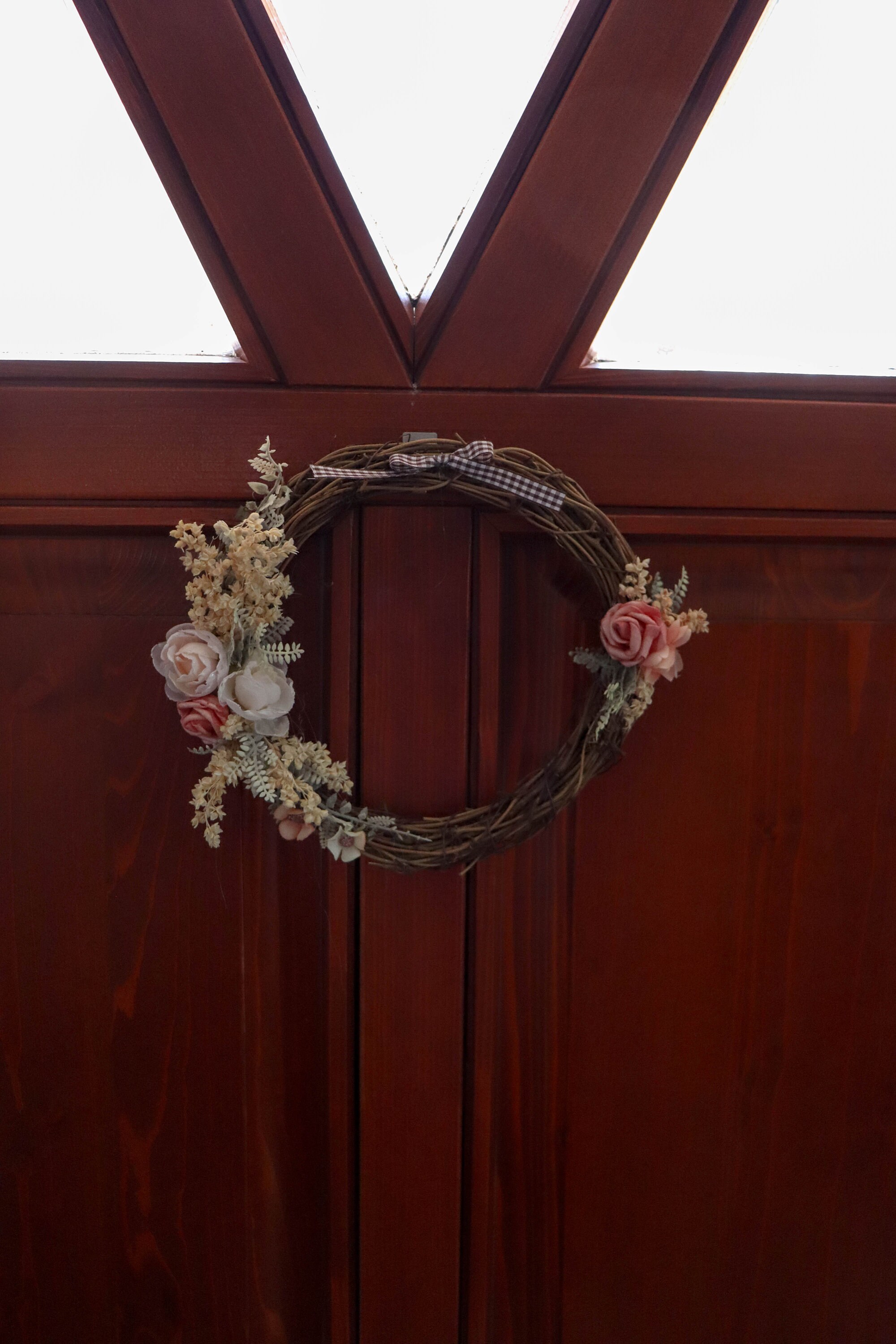The wreath is made of artificial materials.