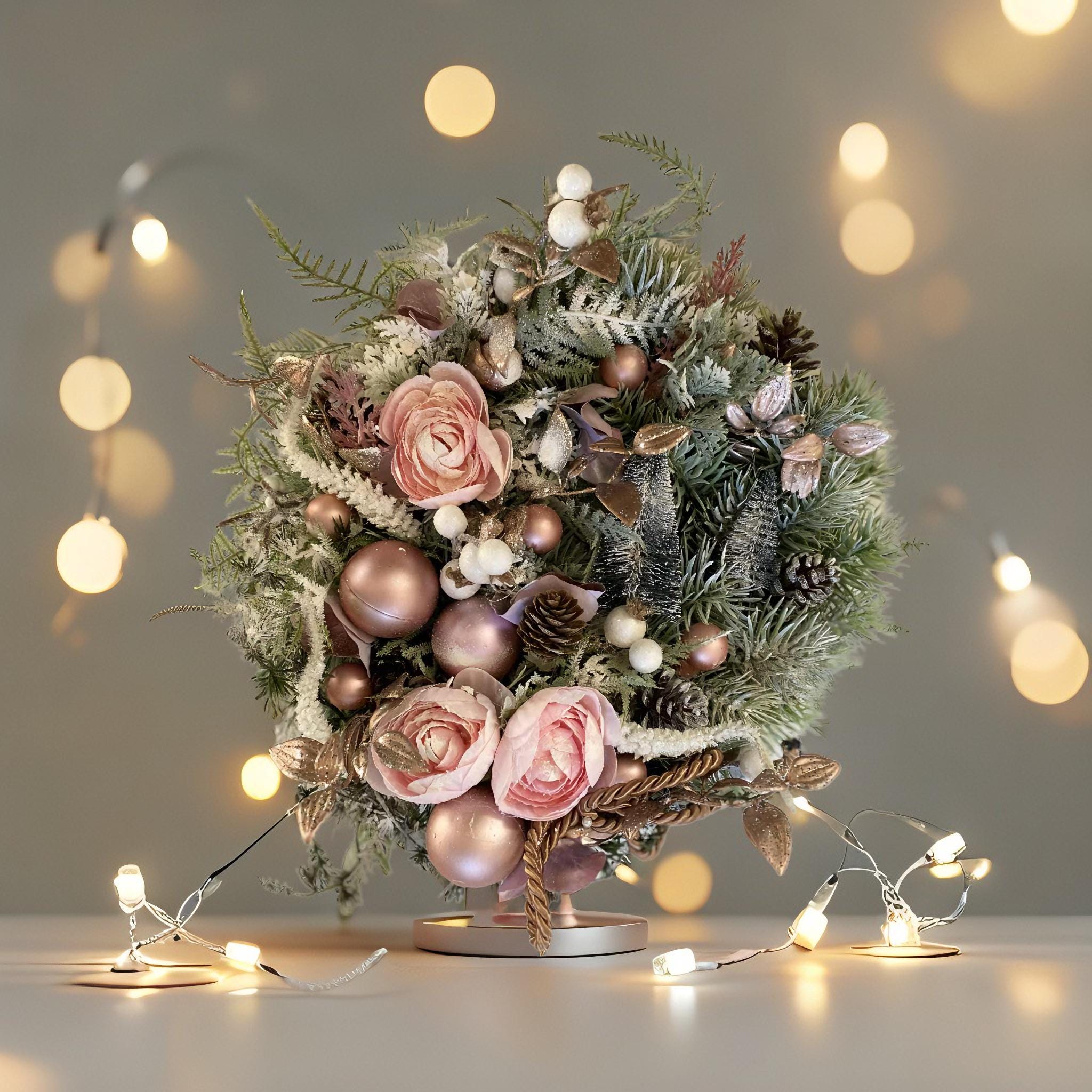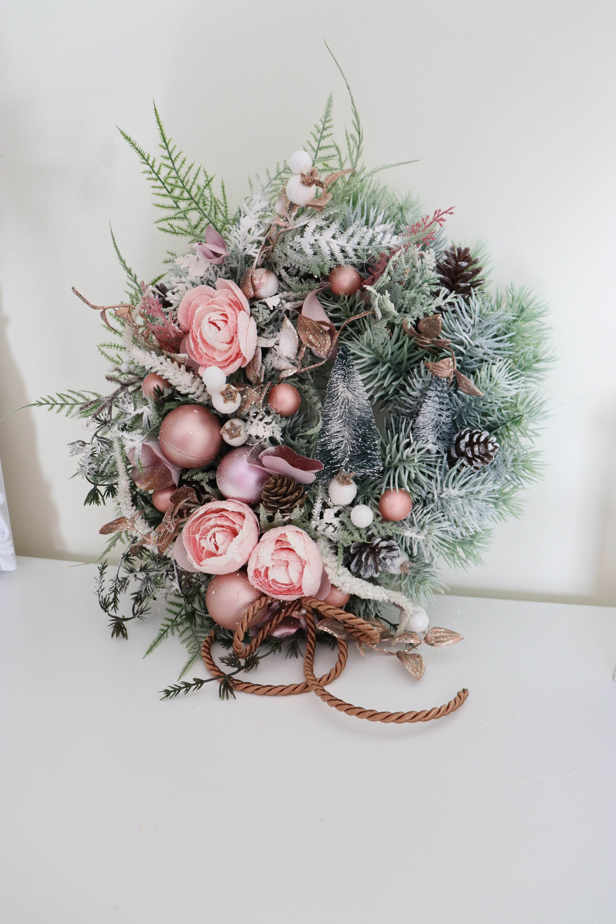 Lifelike Christmas wreath - This lovingly handcrafted Advent wreath offers a classic Christmas look. Christmas wreath with Christmas baubles, pine cones, and green fir branches. Diameter: approx. 30 cm long