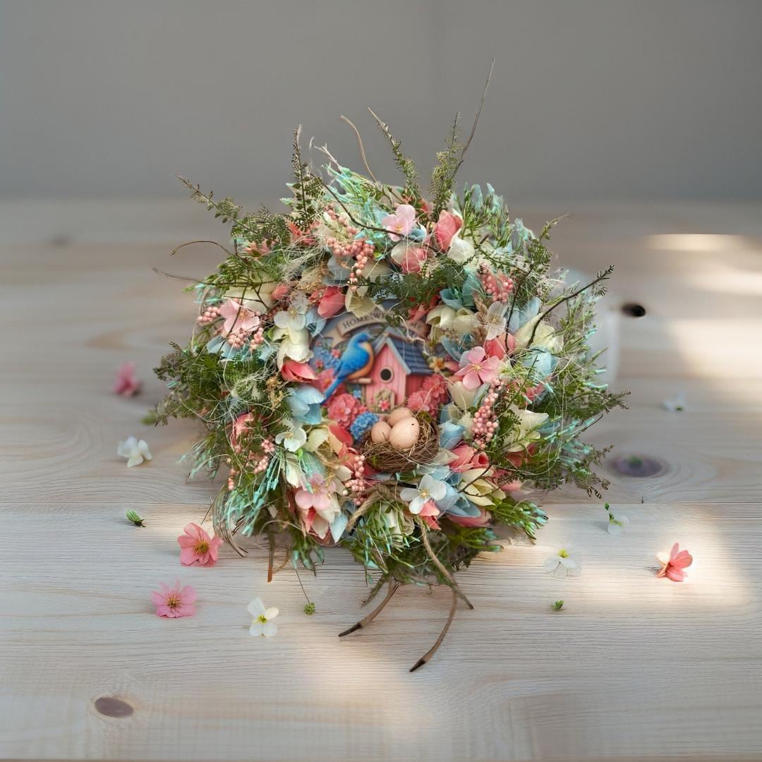 A spring wreath on the door brings freshness and color to your home. This beautiful wreath is handcrafted from high-quality flowers in a wide range of colors that give it a unique and vibrant look. Every detail has been carefully crafted, making this wreath a unique piece. Its versatile design makes it suitable not only for the front door, but also for decorating the interior of your home.