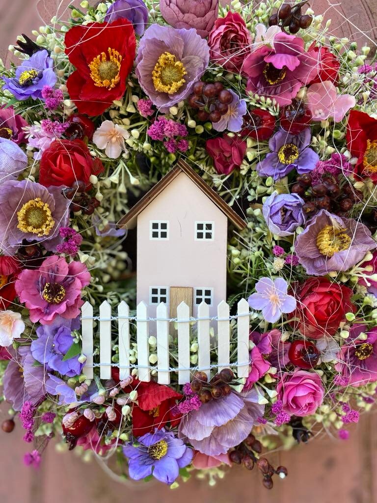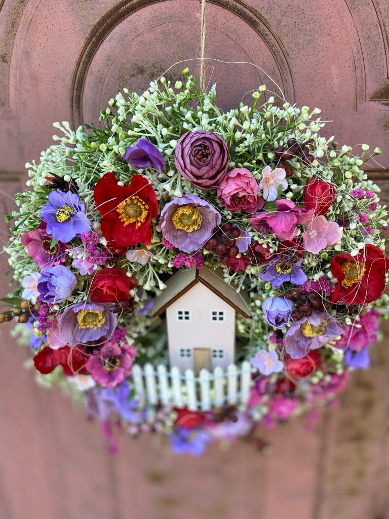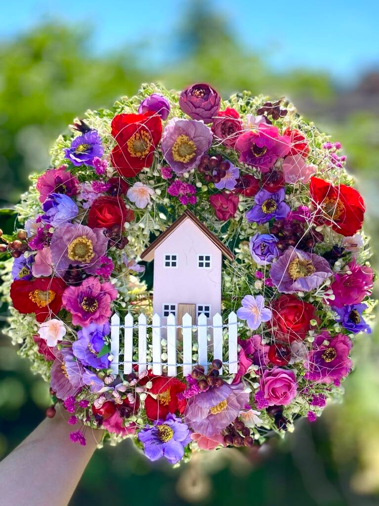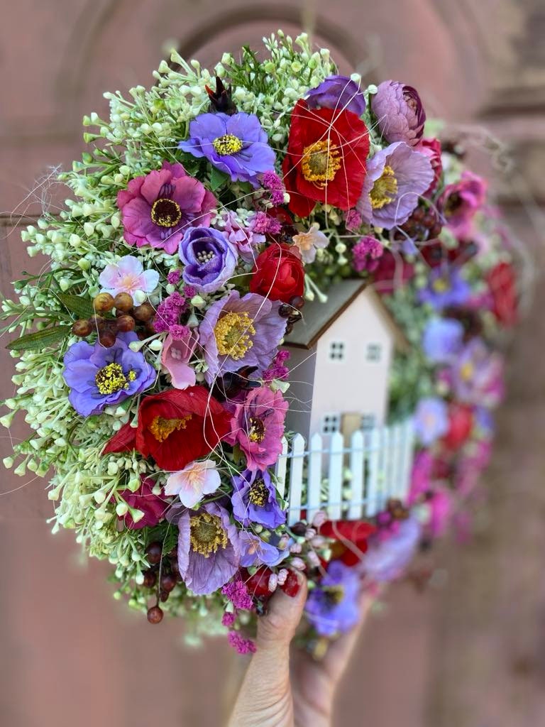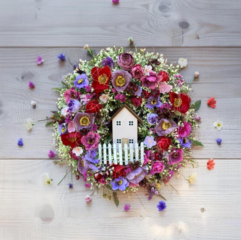 The flowers are made of silk fabric and plastic, the wreath ring is made of natural rattan ring, which is lightweight and not easy to fade, with a realistic texture and durable.