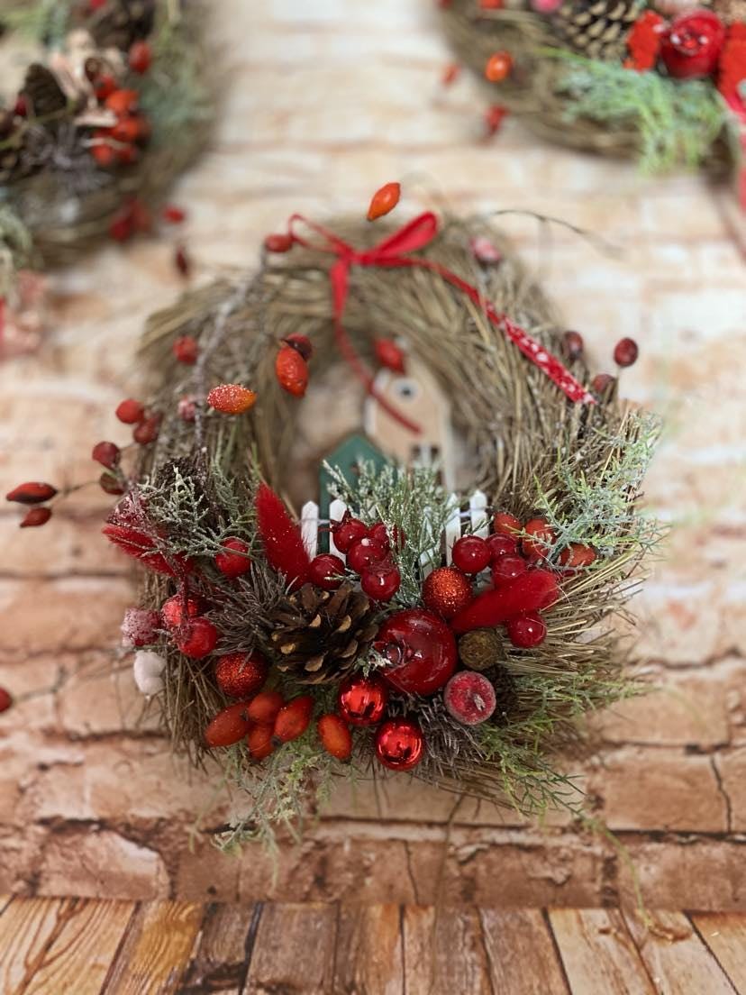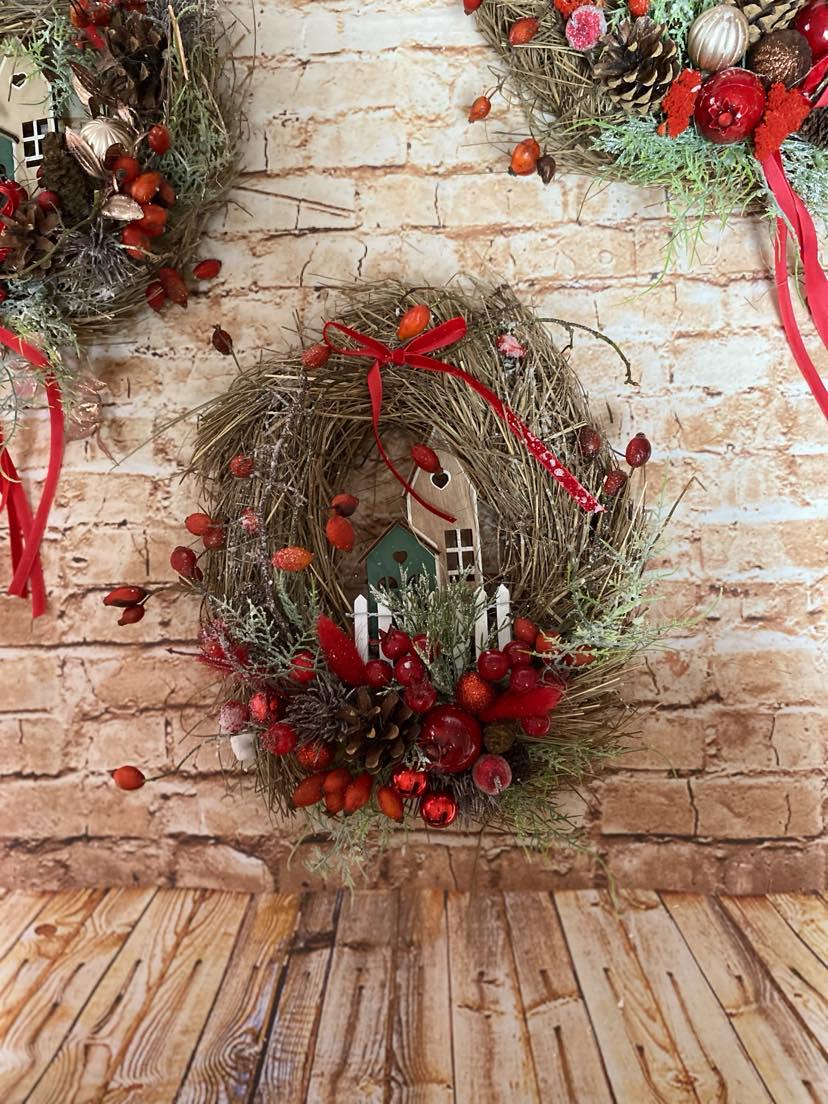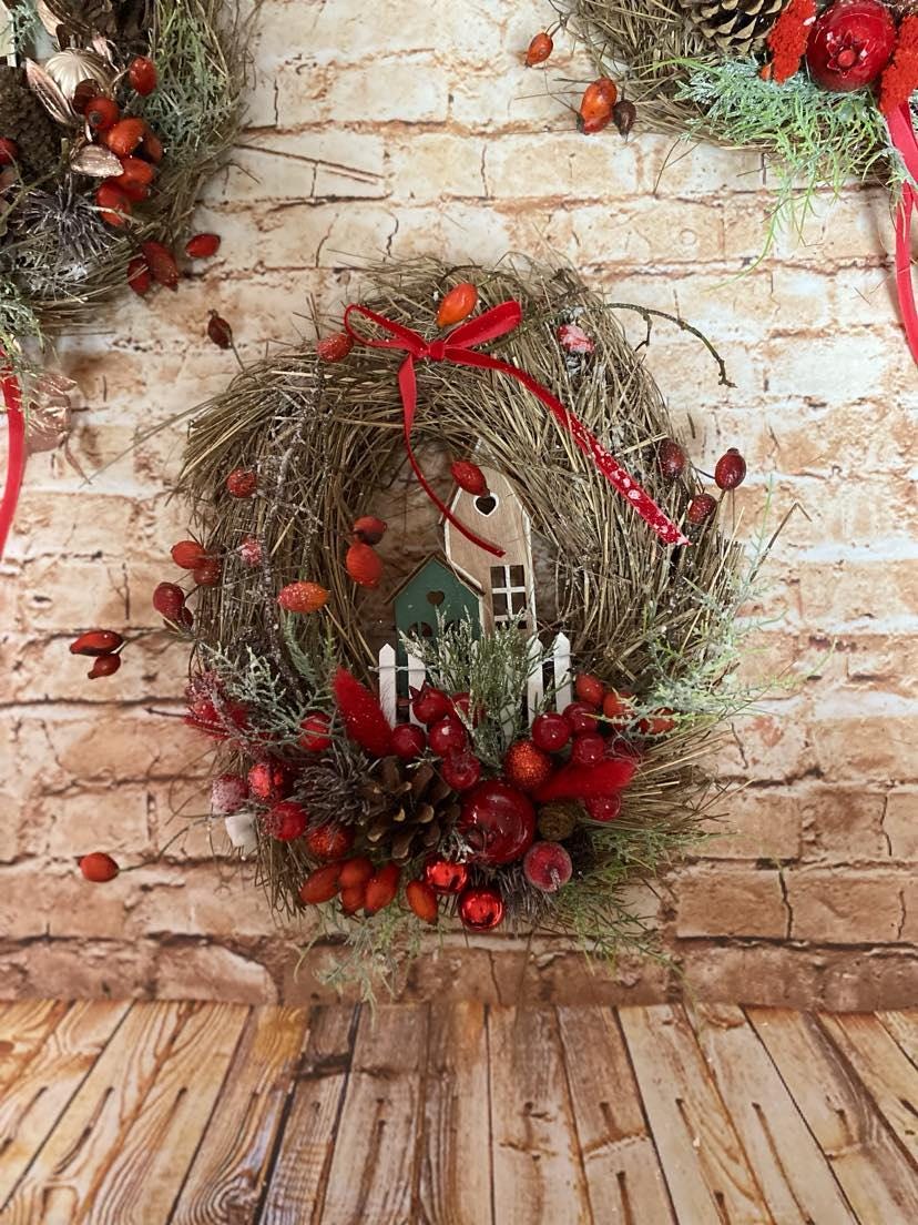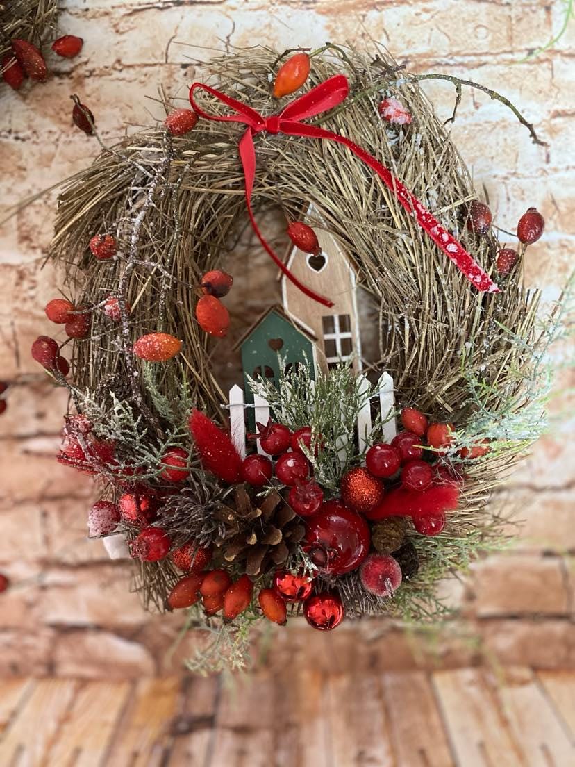 Christmas wreath is decorated with a house.The wreath is very suitable for Christmas decoration, looks beautiful on the covered porch indoors or outdoors.