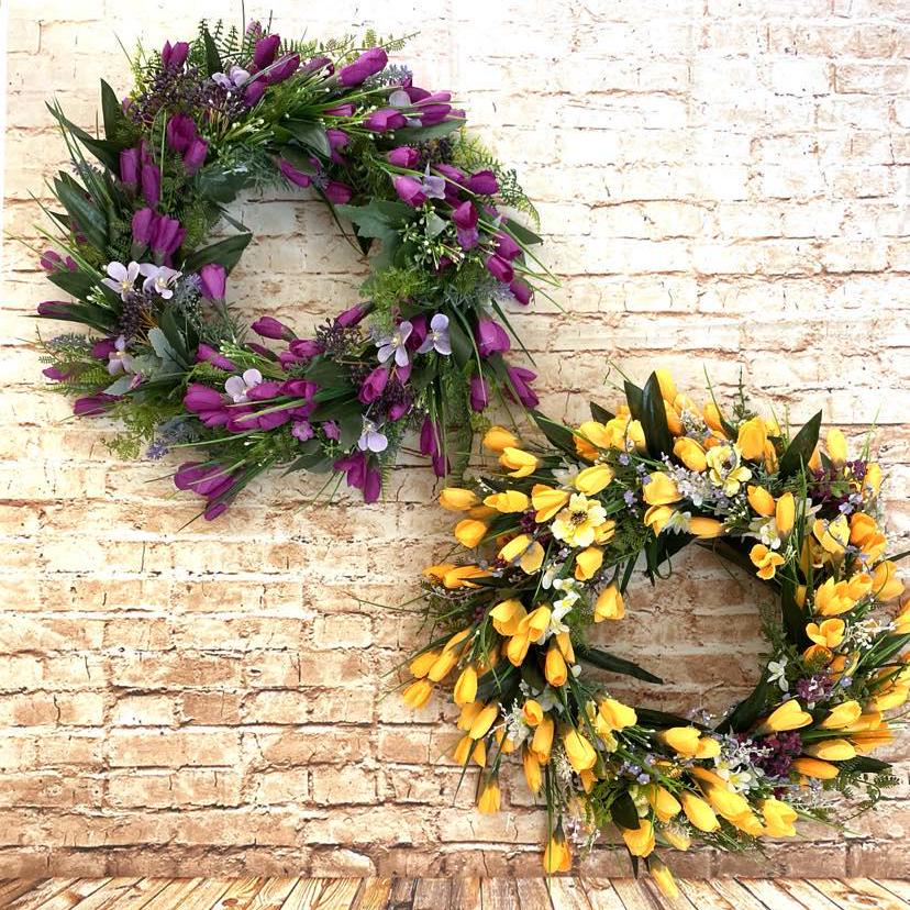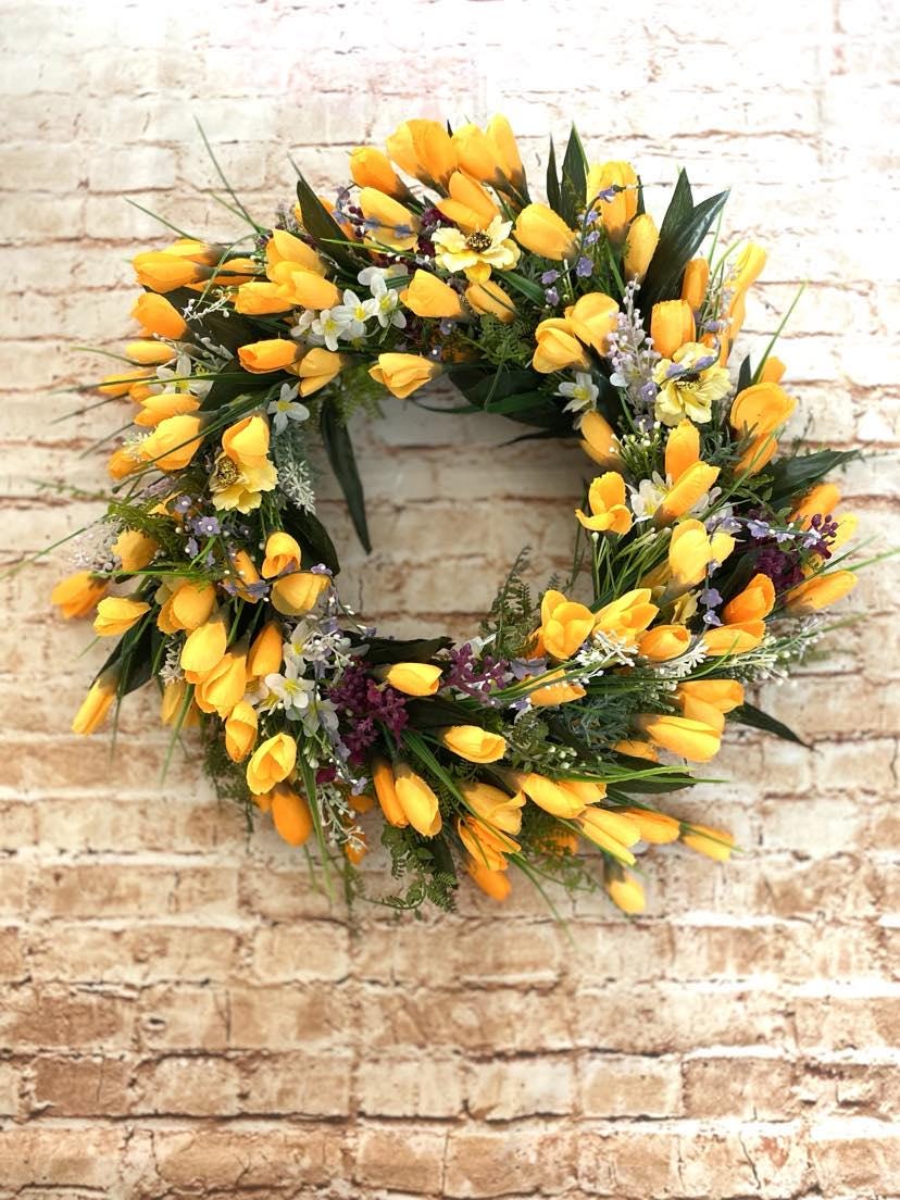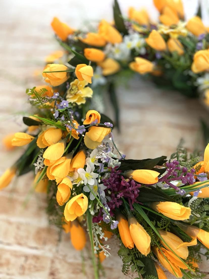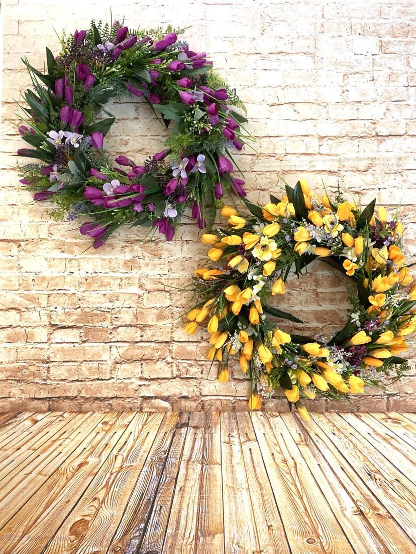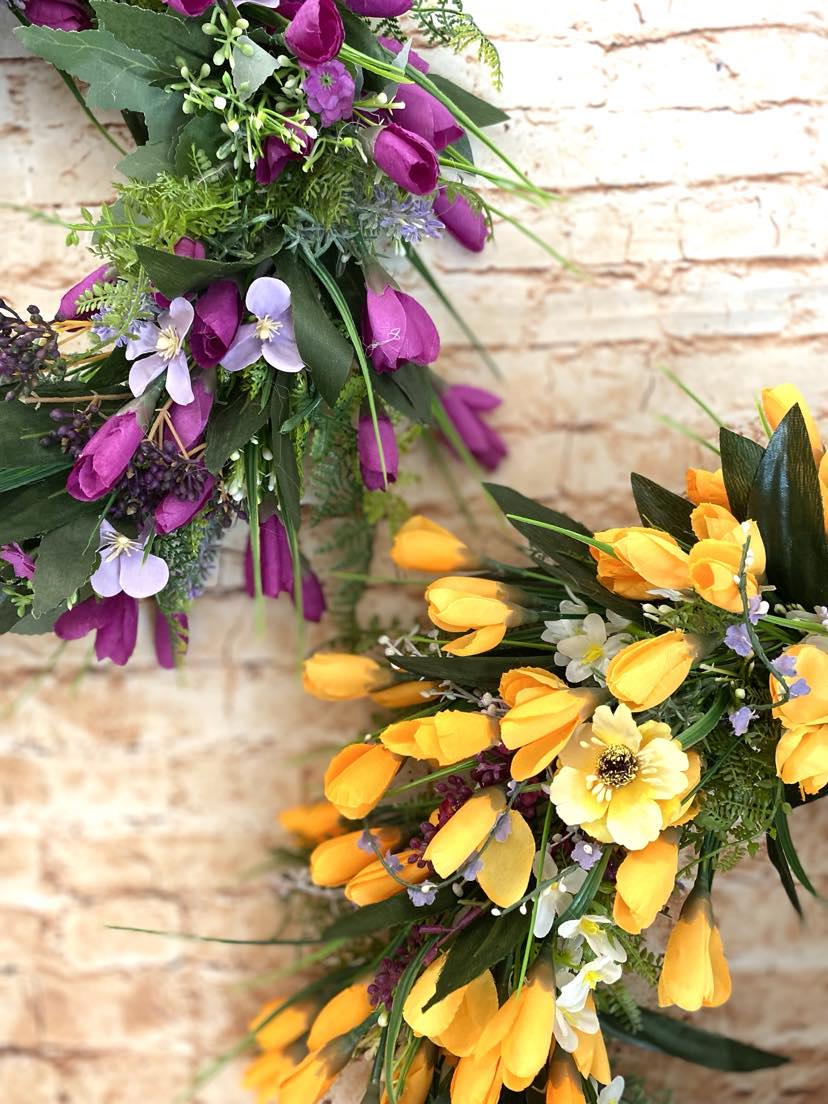 A spring door wreath is the perfect accessory for your home. With delicate purple or yellow crocus flowers, it brings freshness and spring mood. This wreath will instantly bring a touch of spring and an accent of color to your interior or exterior. Created with love and care. The perfect way to welcome spring into your home and delight your loved ones.