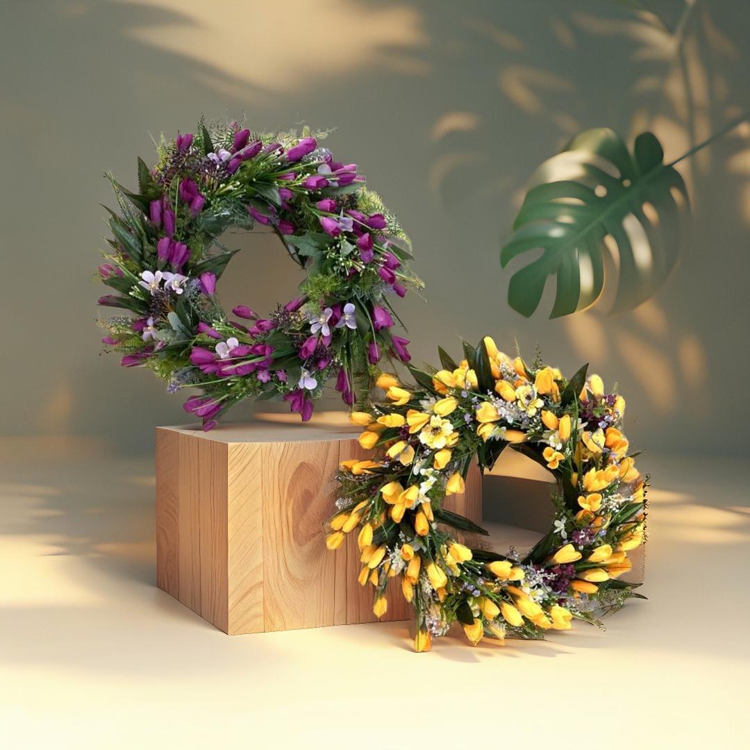 A spring-like door wreath is the perfect accessory for your home. With delicate purple or yellow crocus flowers, it brings freshness and a spring mood. This wreath instantly brings a touch of spring and a splash of color to your indoor or outdoor space. Made with love and care. The perfect way to welcome spring into your home and delight your loved ones.