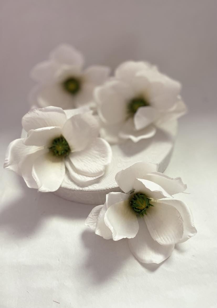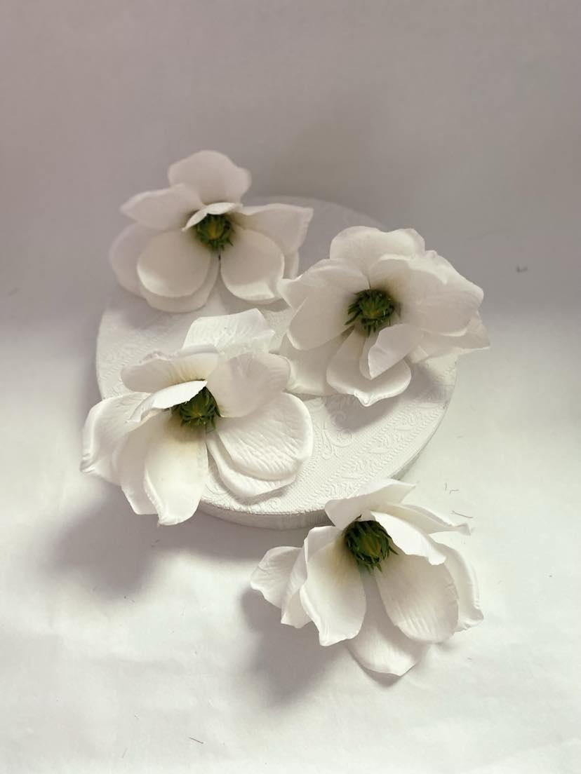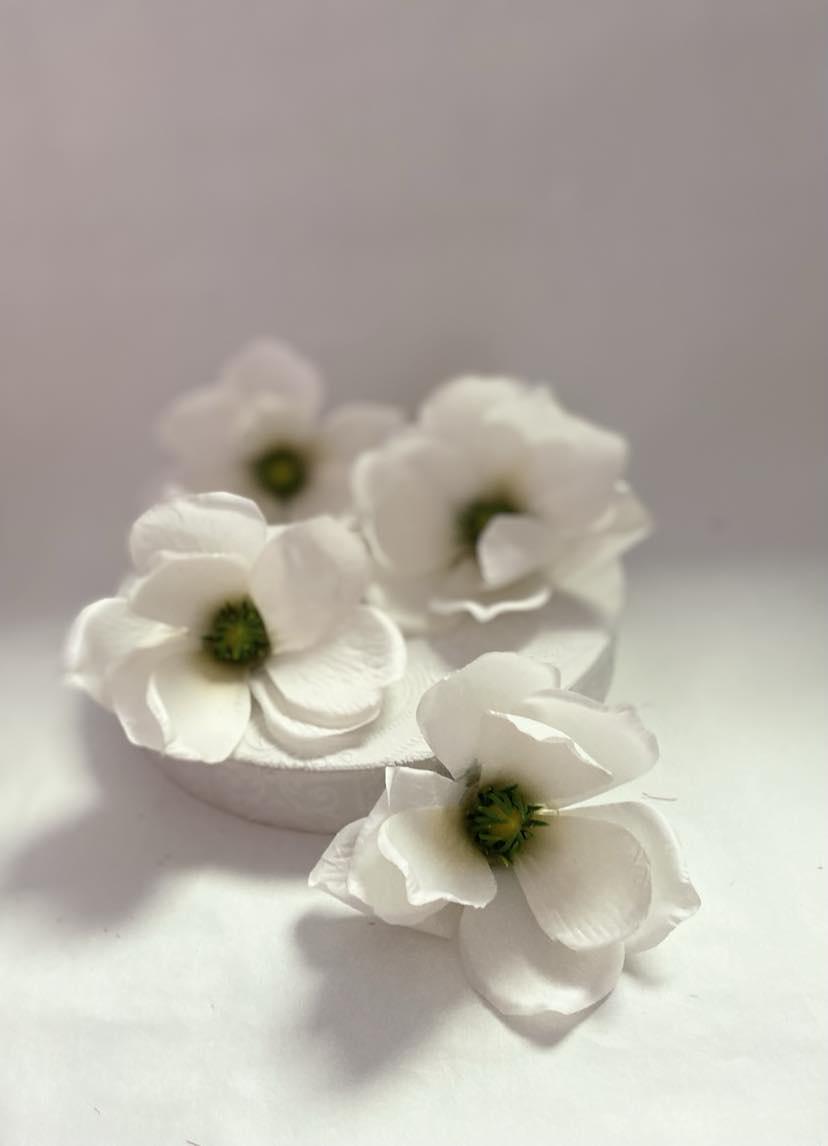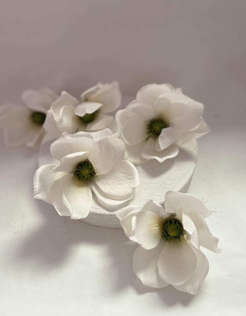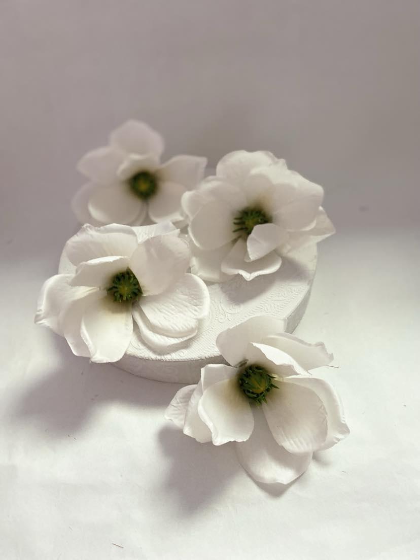 Bring a touch of elegance and natural beauty to your crafts and decorations with our exquisite textile magnolia flower heads in white. These artificial blooms are expertly designed to mimic the lifelike appearance of real flowers, making them perfect for a wide range of applications, from crafting wreaths to decorating tables at weddings and celebrations.