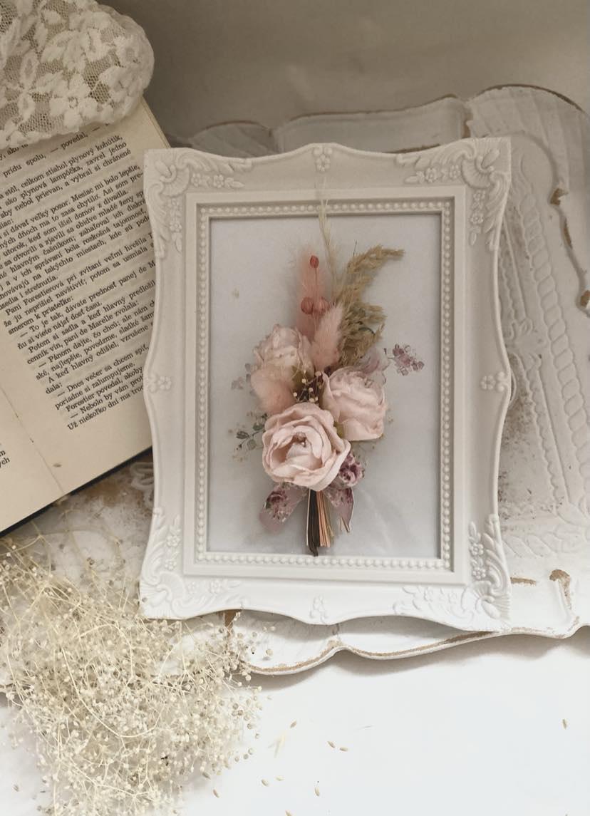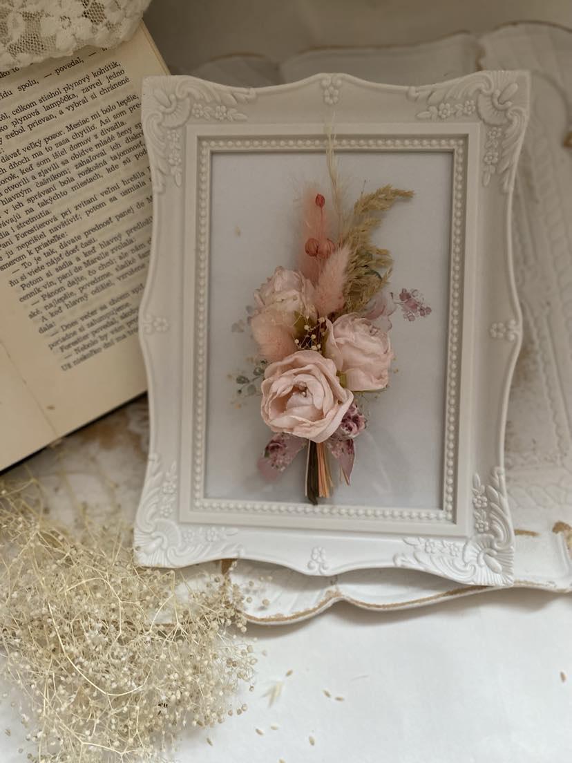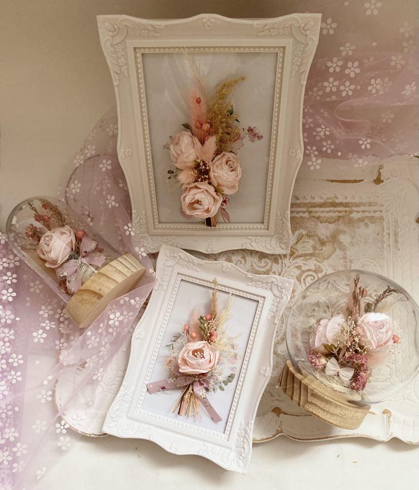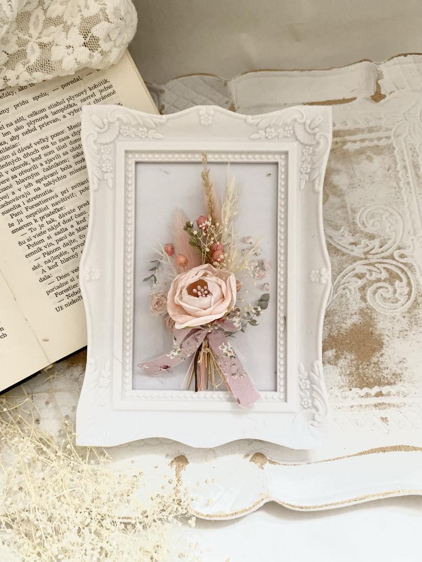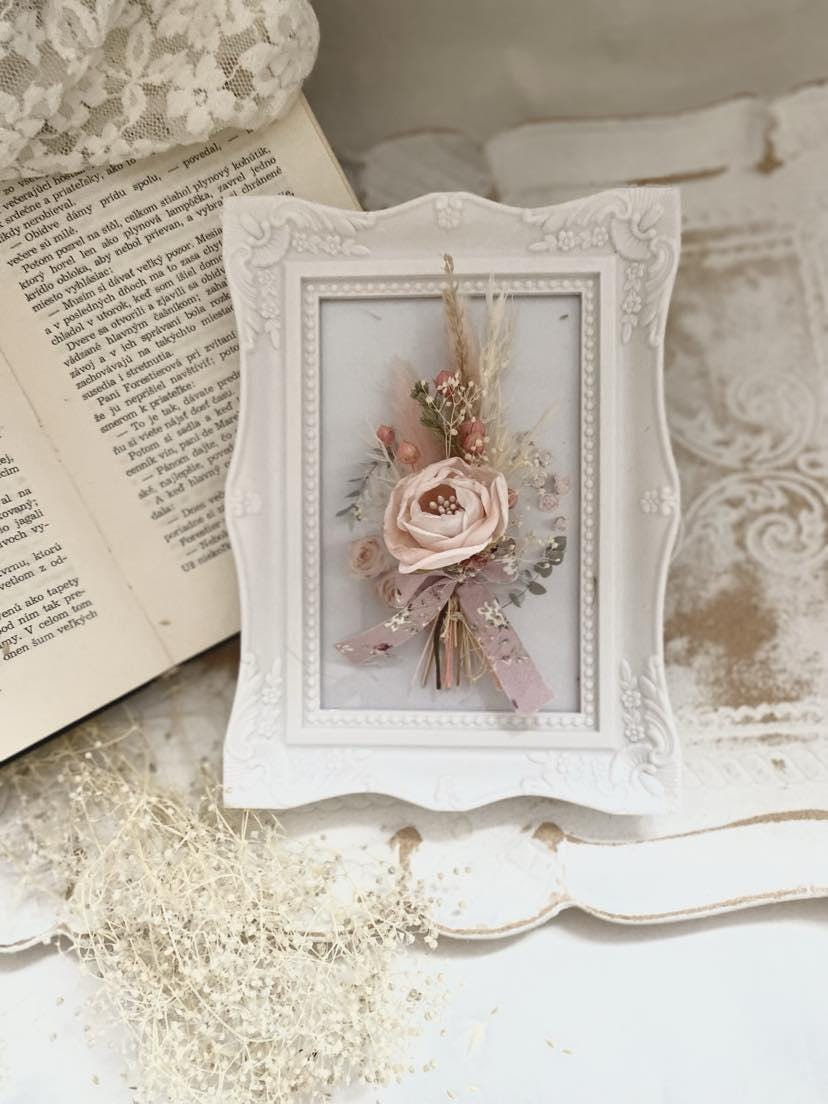 Preserved Floral Art Pink Rose Display Wedding Keepsake Frame Dried Flower Collection Romantic Wall Decor Cottage Style Design Natural Dried Wheat Accent Beautiful Bedroom Display Blush Pink Bloom Custom Size Frame