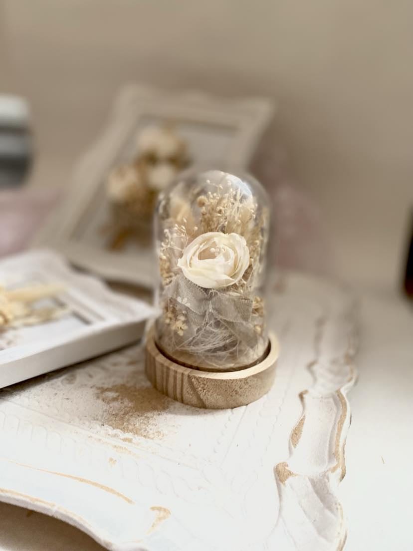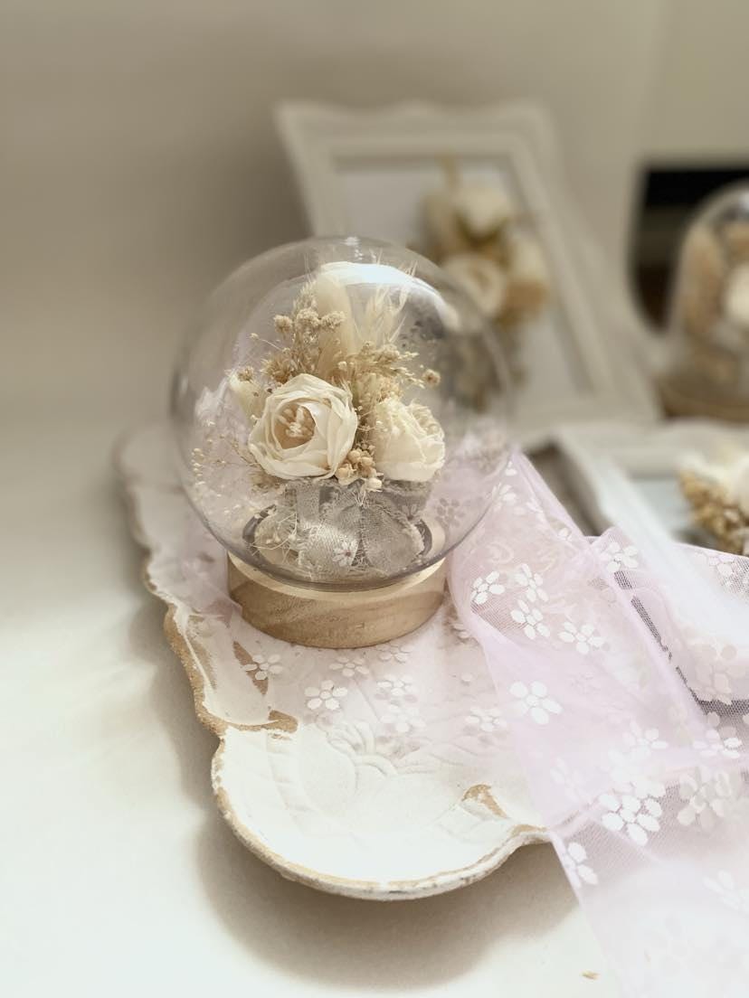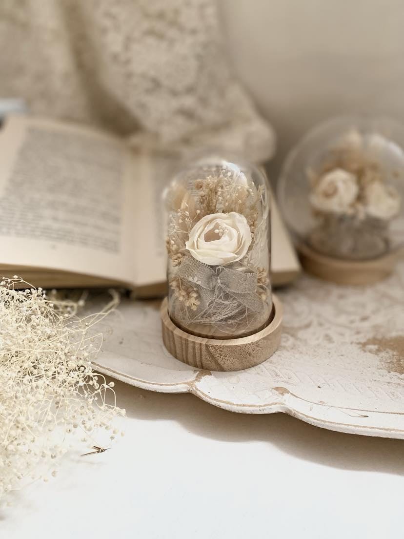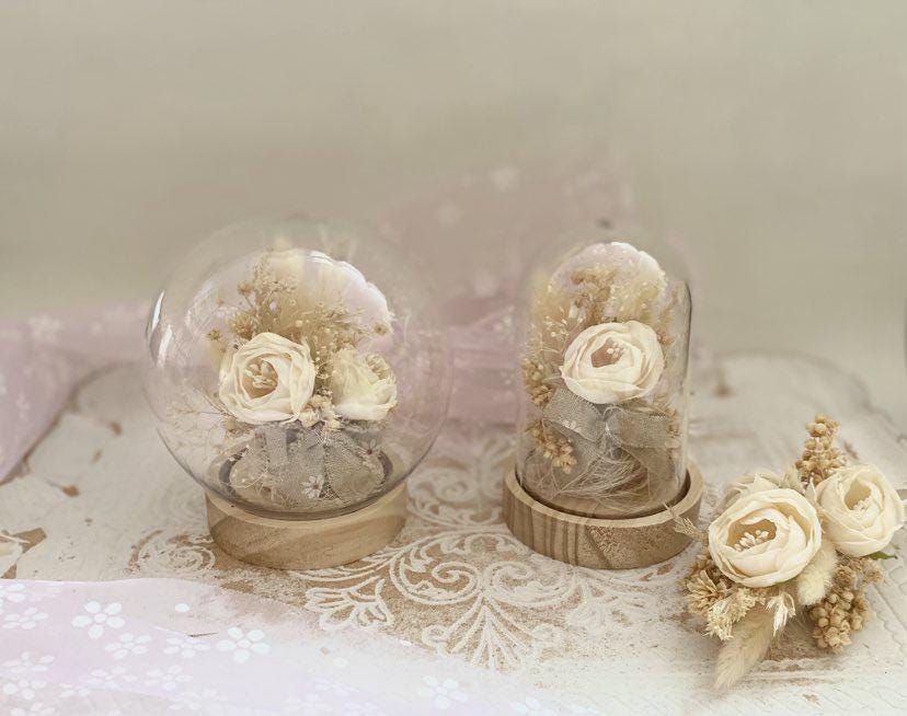 Bridal Gift Collection Preserved Flower Display Plastic Dome Wedding Ring Holder Premium cream Flower Arrangement Elegant Keepsake Design Wooden Base Construction Beautiful Wedding Decor Perfect Anniversary Present Essential Display Set