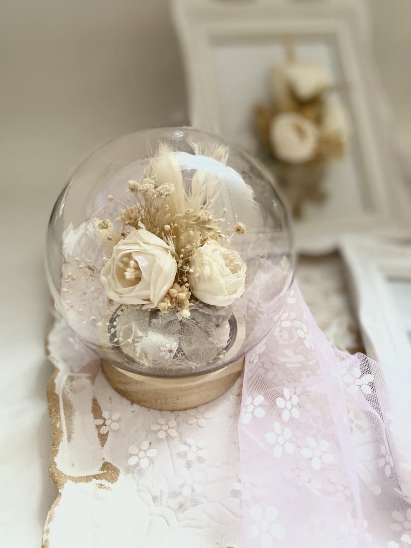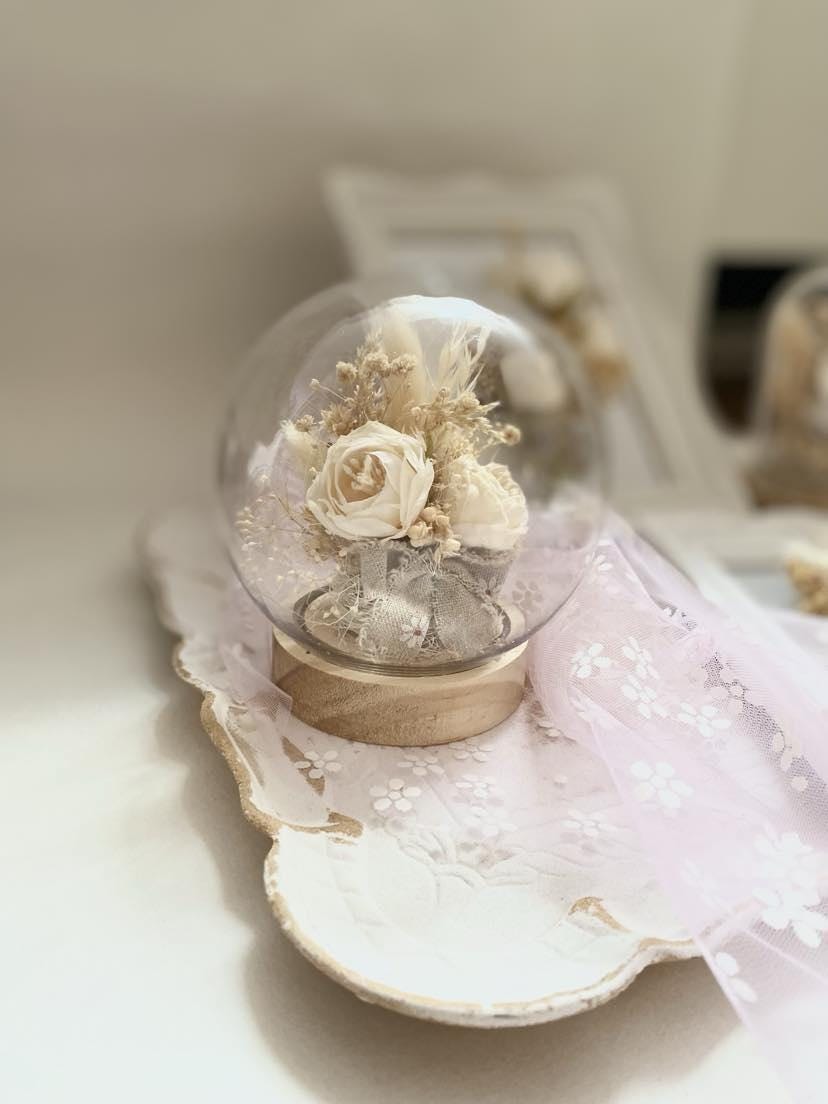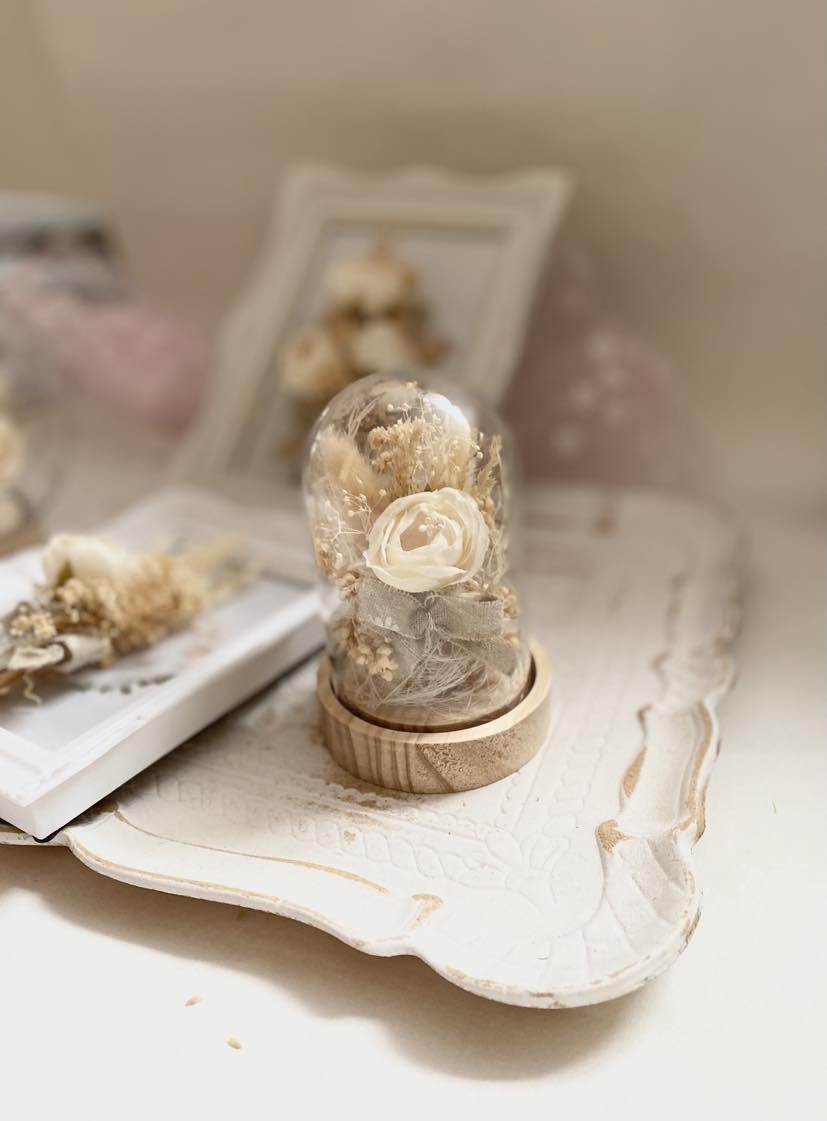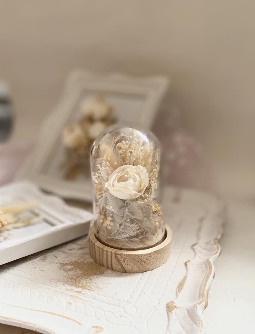 Bridal Gift Collection Preserved Flower Display Plastic Dome Wedding Ring Holder Premium cream Flower Arrangement Elegant Keepsake Design Wooden Base Construction Beautiful Wedding Decor Perfect Anniversary Present Essential Display Set