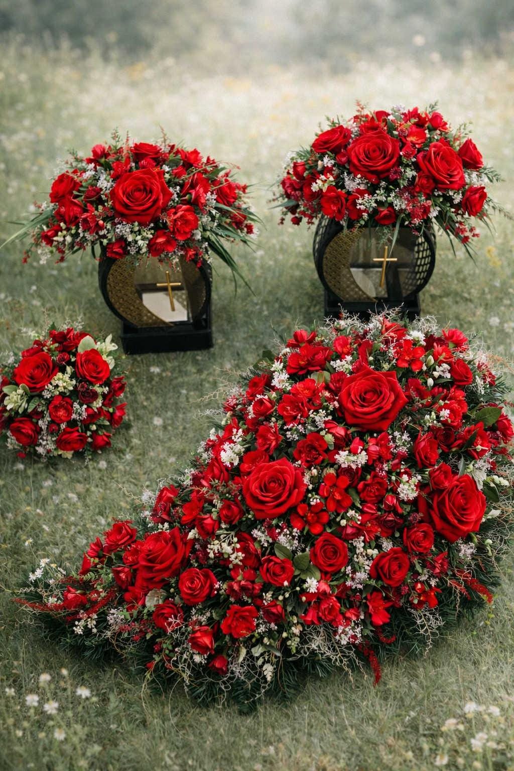 Price is for the floral arrangement only (excluding grave lanterns and bouquet). Other colors are available upon request. Please send a private message.
