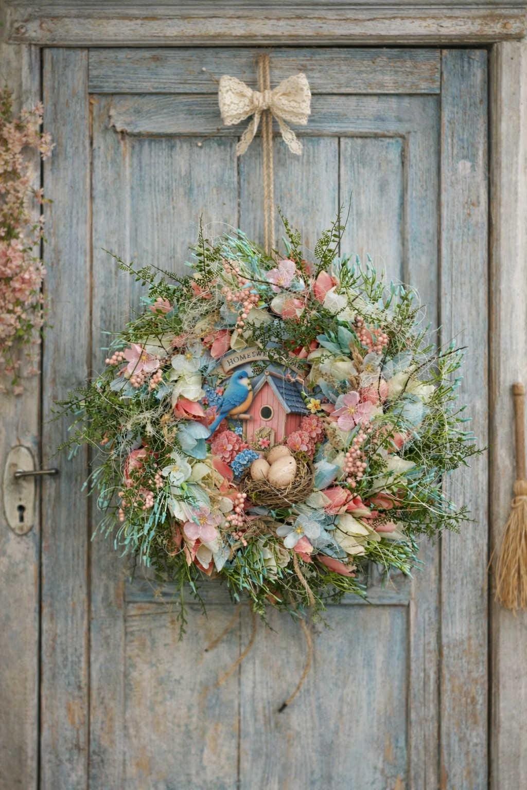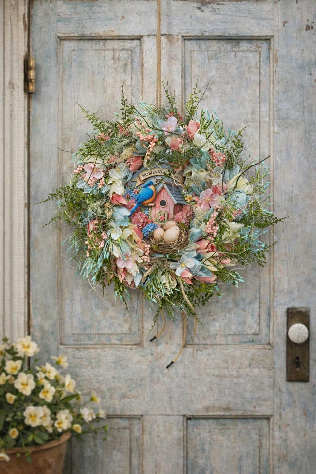 This spring wreath is perfect for the front door, wall, window, fireplace, porch, hallway, etc. It's a great addition for Easter, spring, and summer.