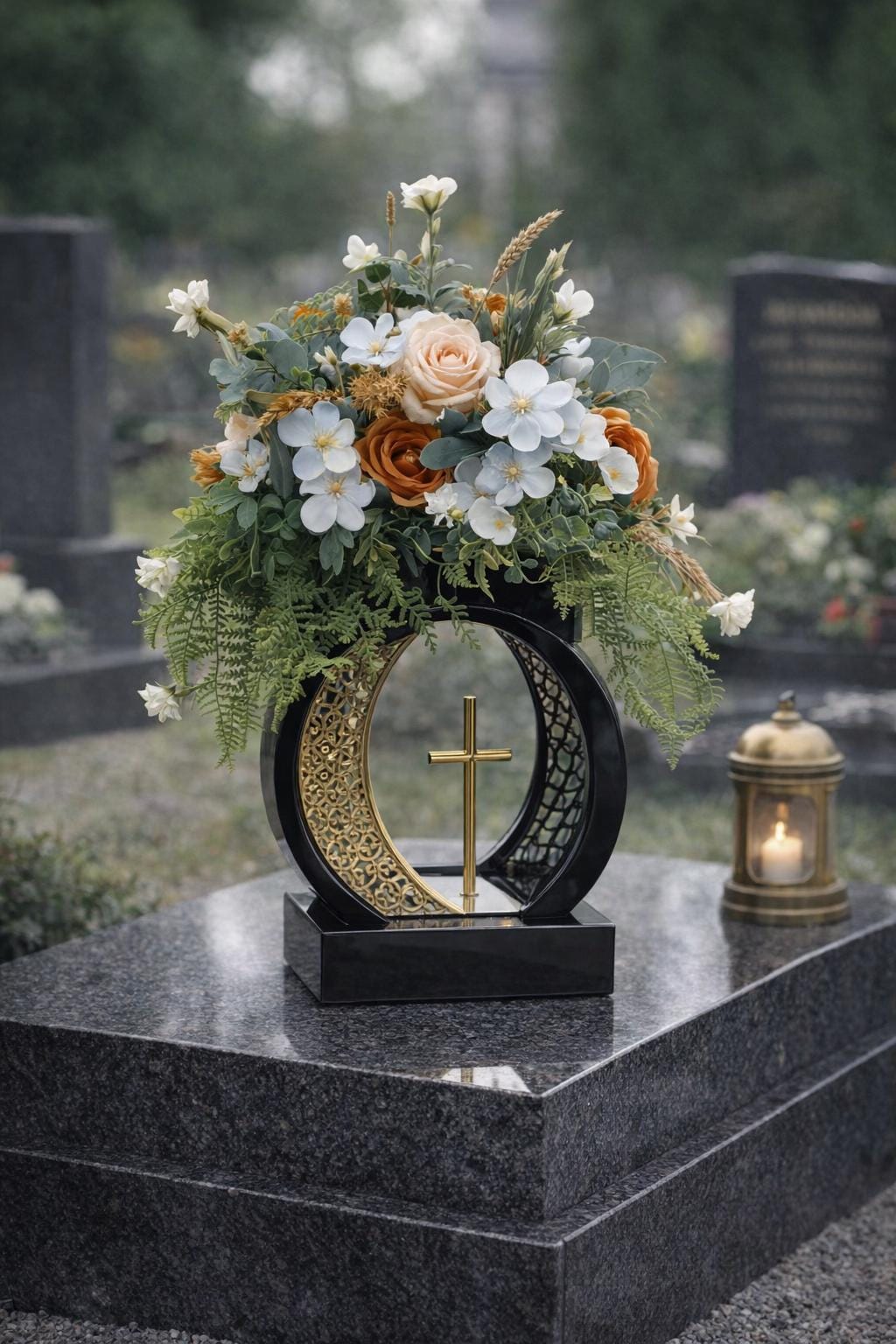 The top part of the lantern can be easily opened, allowing you to place a candle or other meaningful tokens inside. It is adorned with high-quality textile flowers, meticulously arranged to add a touch of grace and serenity to the memorial site.